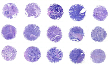 4、收集病例及相關(guān)蠟塊:挑選出具有隨訪資料的不同發(fā)展階段的腫瘤組織蠟塊,根據(jù)HE切片對(duì)石蠟標(biāo)本中有代表性的點(diǎn)進(jìn)行標(biāo)記,包括典型的腫瘤和相應(yīng)的正常組織,以構(gòu)建腫瘤組織芯片。