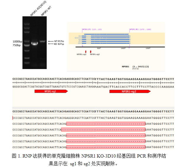 某三甲醫(yī)院腫瘤研究所需構(gòu)建結(jié)直腸癌細(xì)胞KO細(xì)胞株(靶基因?yàn)?/span>NPSR1),傳統(tǒng)脂質(zhì)體轉(zhuǎn)染效率不足30%。我們采用RNP電轉(zhuǎn)法,優(yōu)化參數(shù)后轉(zhuǎn)染效率達(dá)80%,8周成功交付KO單克隆純合子,經(jīng)團(tuán)隊(duì)后期Western blot檢測(cè),NPSR1基因敲除率100%。
